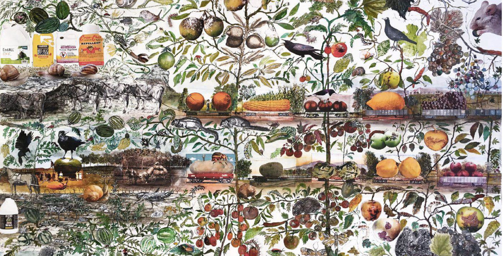 Marzia Migliora è artista che usa un’ampia gamma di linguaggi, tra cui fotografia, video, suono, performance, installazione e disegno, per creare opere che elevano le più semplici attività umane a momenti in grado di raccontare stralci di storia collettiva. Le tematiche ricorrenti nel suo lavoro sono la memoria come strumento di articolazione del presente e l’analisi dell'occupazione lavorativa come affermazione di partecipazione alla sfera pubblica. In occasione della decima edizione della Notte Verde di Castiglione, nel contesto dei temi urgenti esplorati nel laboratorio politico del festival attraverso il dialogo diretto con i cittadini, l’artista interviene per le strade di Castiglione con una serie di affissioni pubbliche di grandi dimensioni con soggetto i collage e disegni appartenenti alla serie Paradossi dell’abbondanza (2017-2021). Il titolo è preso a prestito da un capitolo del libro “Una storia commestibile dell’umanità” del giornalista inglese Tom Standage che, nel suo saggio, ripercorre una certa idea di modernità attraverso la storia dell’agricoltura e del suo asservimento alla produzione di cibo come merce: con l’introduzione di monoculture, produzioni intensive, pesticidi, organismi geneticamente modificati e quanto ha permesso un presunto dominio dell’uomo sui cicli naturali della germinazione.